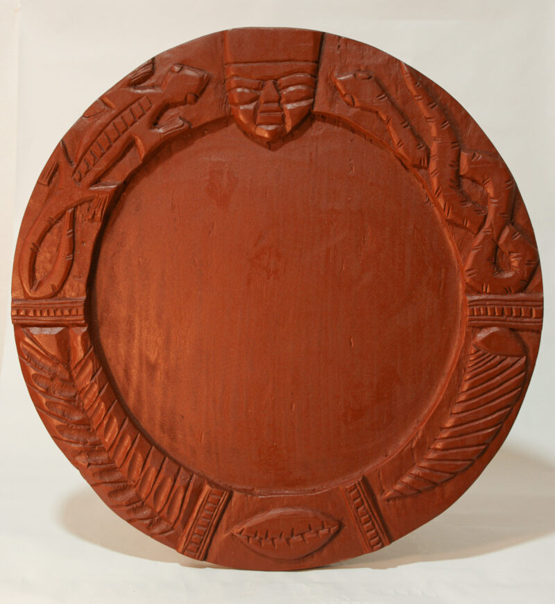Tablero de madera labrado a mano, utilizado por los sacerdotes y sacerdotizas de ifa para realizar adivinacion con orunmila o ebbos, magias. Importado de Nigeria. Los diseños son únicos por tanto pueden variar las medidas; Diametro 52 cm: Peso: 2.30 kilos